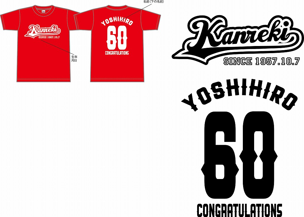 還暦Tシャツは5つのデザインをご用意いたします、セミオーダータイプです